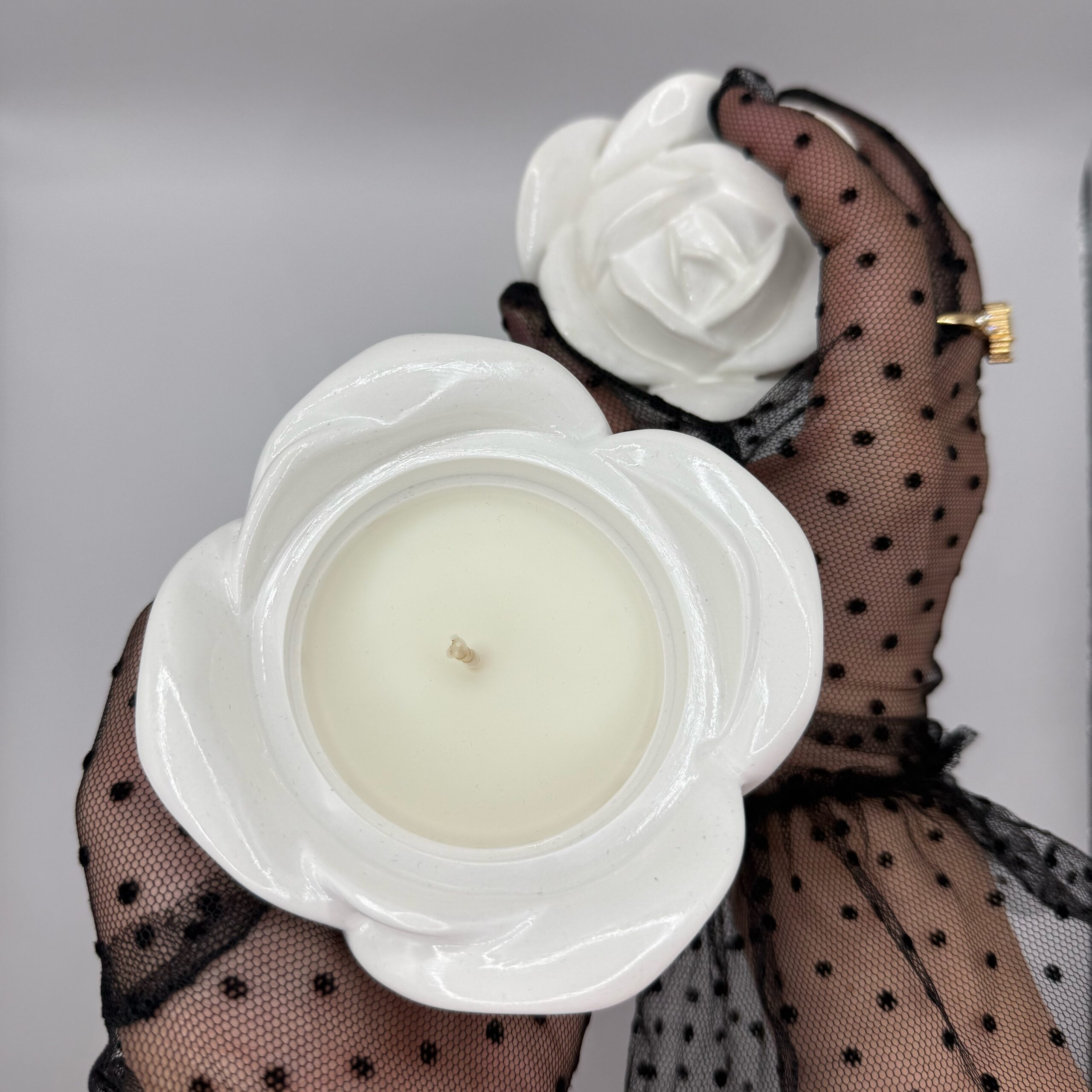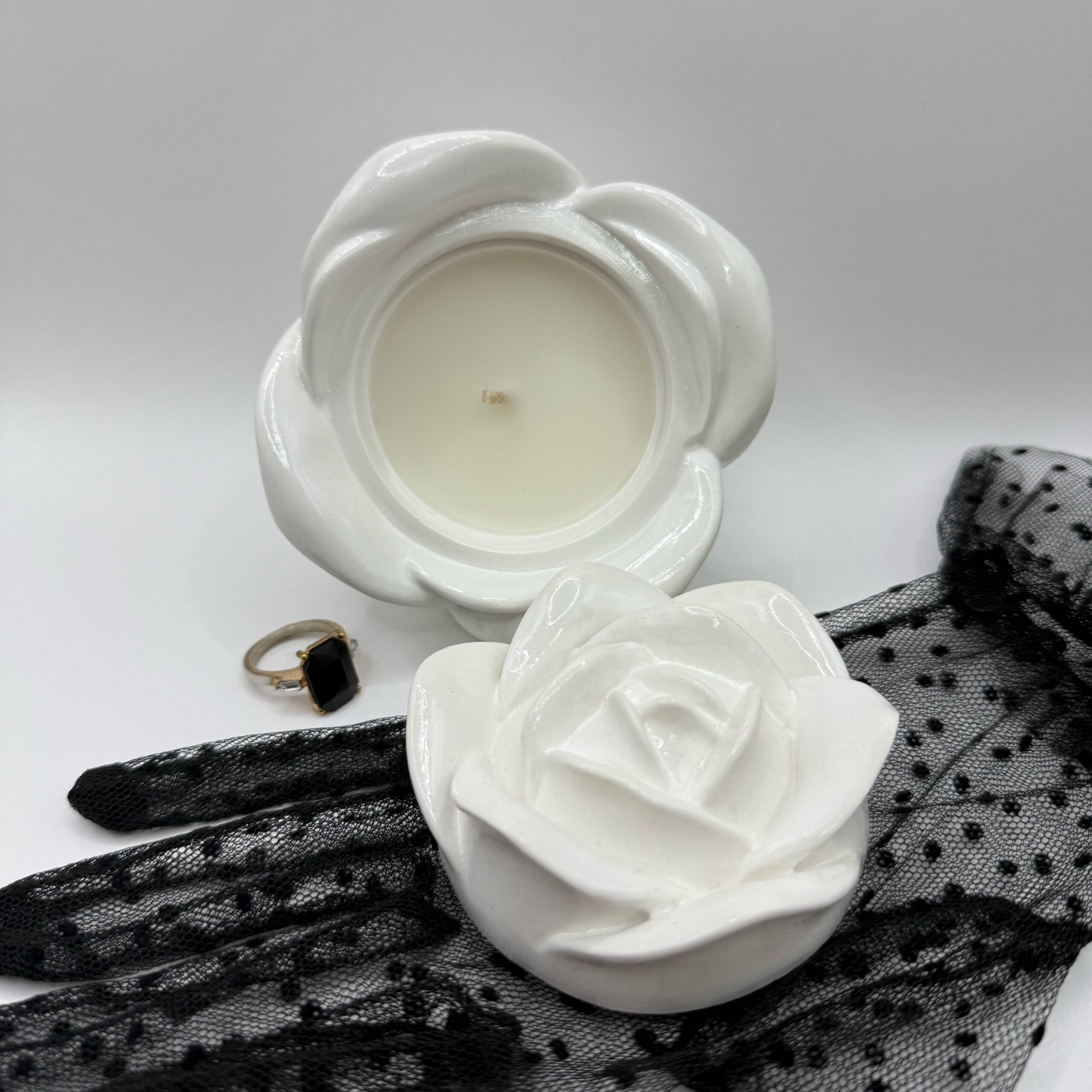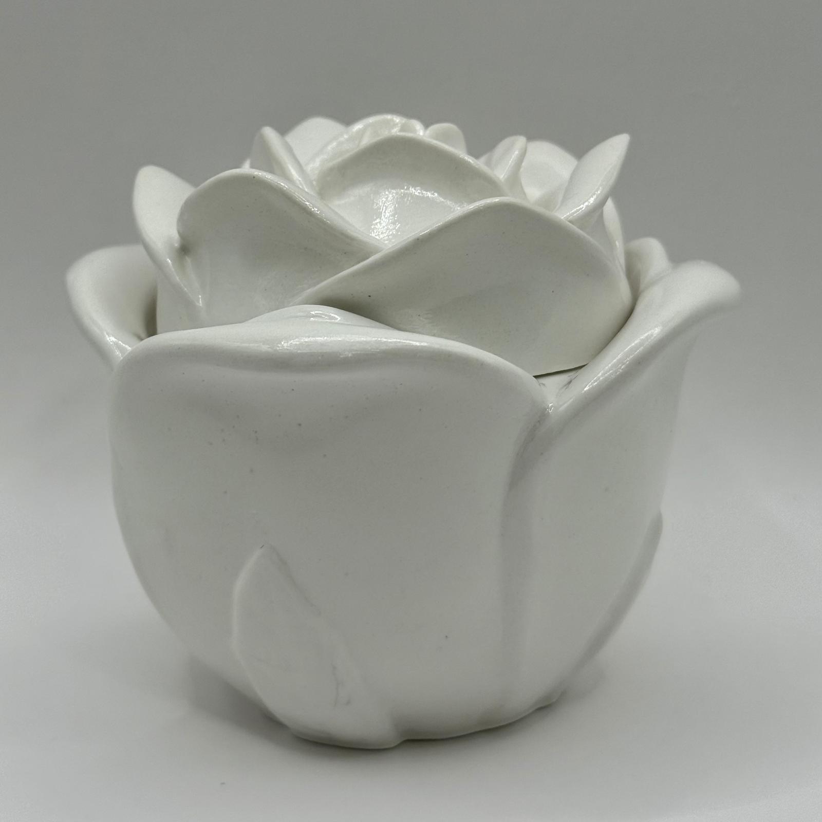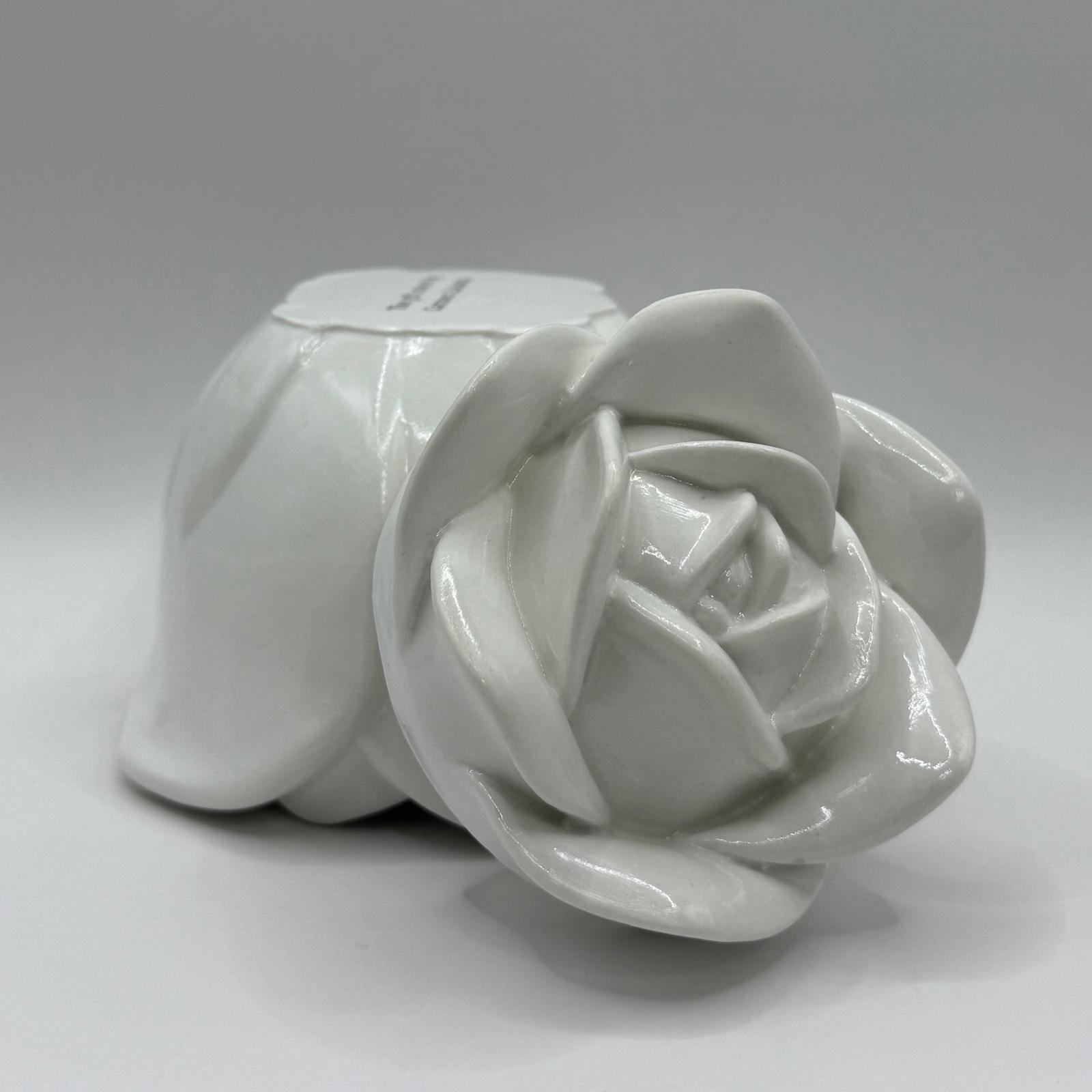 Rose Bloom Jar, un recipient elegant și delicat, realizat din ceramică premium, umplut cu cea mai pură ceară de soia. Elementul central este capacul modelat în formă de trandafir 3D, atent sculptat pentru un aspect natural și romantic, care păstrează la interior aromele intense ale lumânărilor noastre.