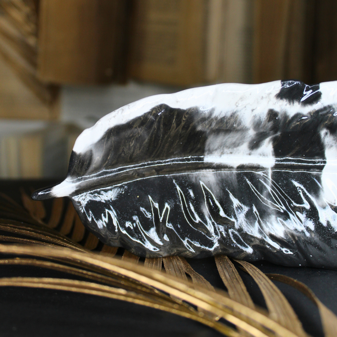 Tava în formă de pană de înger este o piesă delicată, realizată manual din praf ceramic de înaltă calitate.